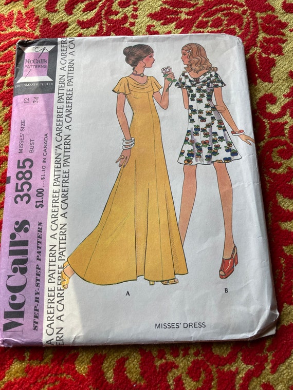 Buy Vintage 1970 S Mccall S 3585 Dress Sewing Pattern Size Online In India Etsy
